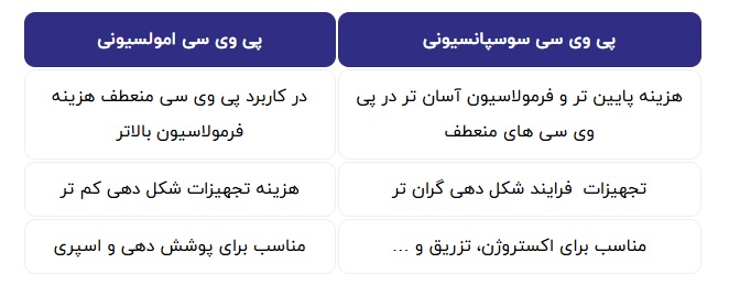 مهمترین تفاوت های پی وی سی هایی که به روش سوسپانسیون و امولسیون تولید می شوند را عبارتند از :