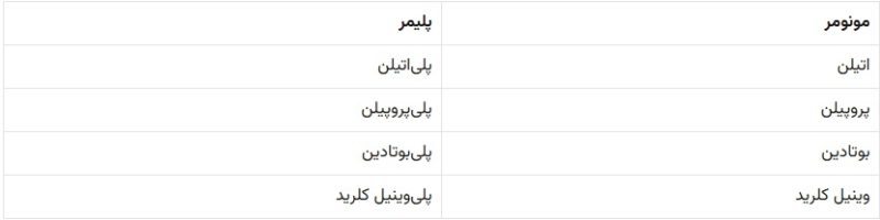 بنابراین در بسیاری موارد ویژگی‌هایی که از خود نشان می‌دهند از مونومرهای سازنده آن‌ها متفاوت است. در تصویر زیر می‌توانید تفاوت واحدهای سازنده پلیمرها را به‌صورت واضح مشاهده کنید.