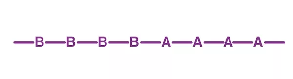 زمانی که بیش از یک واحد هموپلیمری با پیوند کووالانسی به یکدیگر متصل باشند، درشت‌مولکولی به وجود می‌آید که آن را «کوپلیمر دسته‌ای» (Block Copolymer) می‌نامند. این کوپلیمر می‌تواند از دو یا سه و تعداد بیشتری هموپلیمر به وجود بیاید. مثالی از این دسته «آکریلونتریل بوتادین استایرن» است. در تصویر زیر کوپلیمری را مشاهده می‌کنید که از دو مونومر Bو A به وجود آمده است