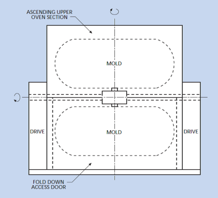 تخته روی ریلی است که به قالب و تخته اجازه ورود و خروج از آون را می‌دهد. پس از اتمام سیکل گرمایشی، قالب وارد یک جایگاه باز سرمایشی می‌شود. یک تخته با یک قالب هم از جهت مخالف وارد آون می‌شود.