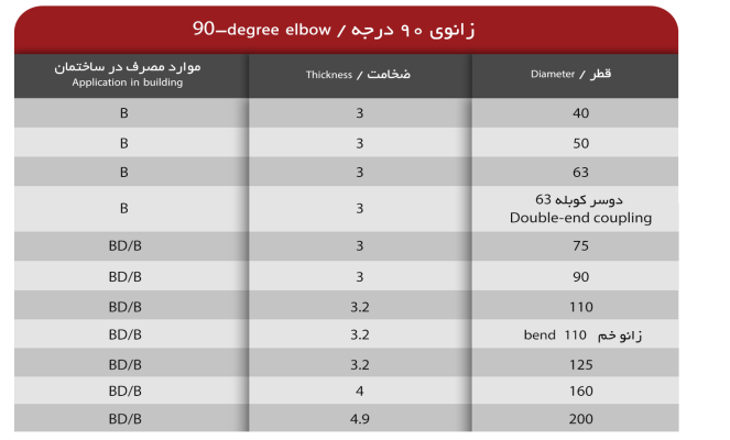 زانوی 90 درجه پلیکا از جنس پی وی سی تولید شده و با دیواره ضخیم استفاده میشود. این دیواره ضخیم مقاومت بالایی در برابر فشار و ضربه جریان آب به وجود میآورد. زانوهای 90 درجه زمانی که به برگشت آب در حد 90 درجه نیاز باشد، استفاده میشوند. این نوع زانوها برای فضاهای صنعتی، آبرسانی، شیمیایی، کشاورزی و…